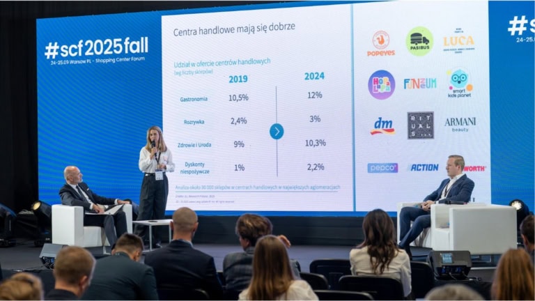 24-25 września odbyło się najważniejsze wydarzenie dla rynku centrów handlowych w Polsce – targi #scf2025fall. Ta edycja była rekordowa. Wzięło udział 1656 uczestników, w tym ponad 500 najemców. Ponad 60% uczestników stanowiły osoby zajmujące kluczowe, decyzyjne stanowiska w firmach deweloperskich, inwestycyjnych oraz w spółkach właścicieli marek handlowych.